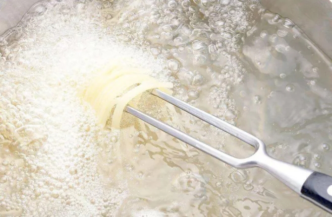 水是制作面條必不可少的原料。水可使淀粉吸水膨潤,將無可塑性的干面粉轉化為可塑性的濕面條,使小麥中的蛋白質吸水膨脹,從而形成面筋,使面條產生彈性和延伸性。