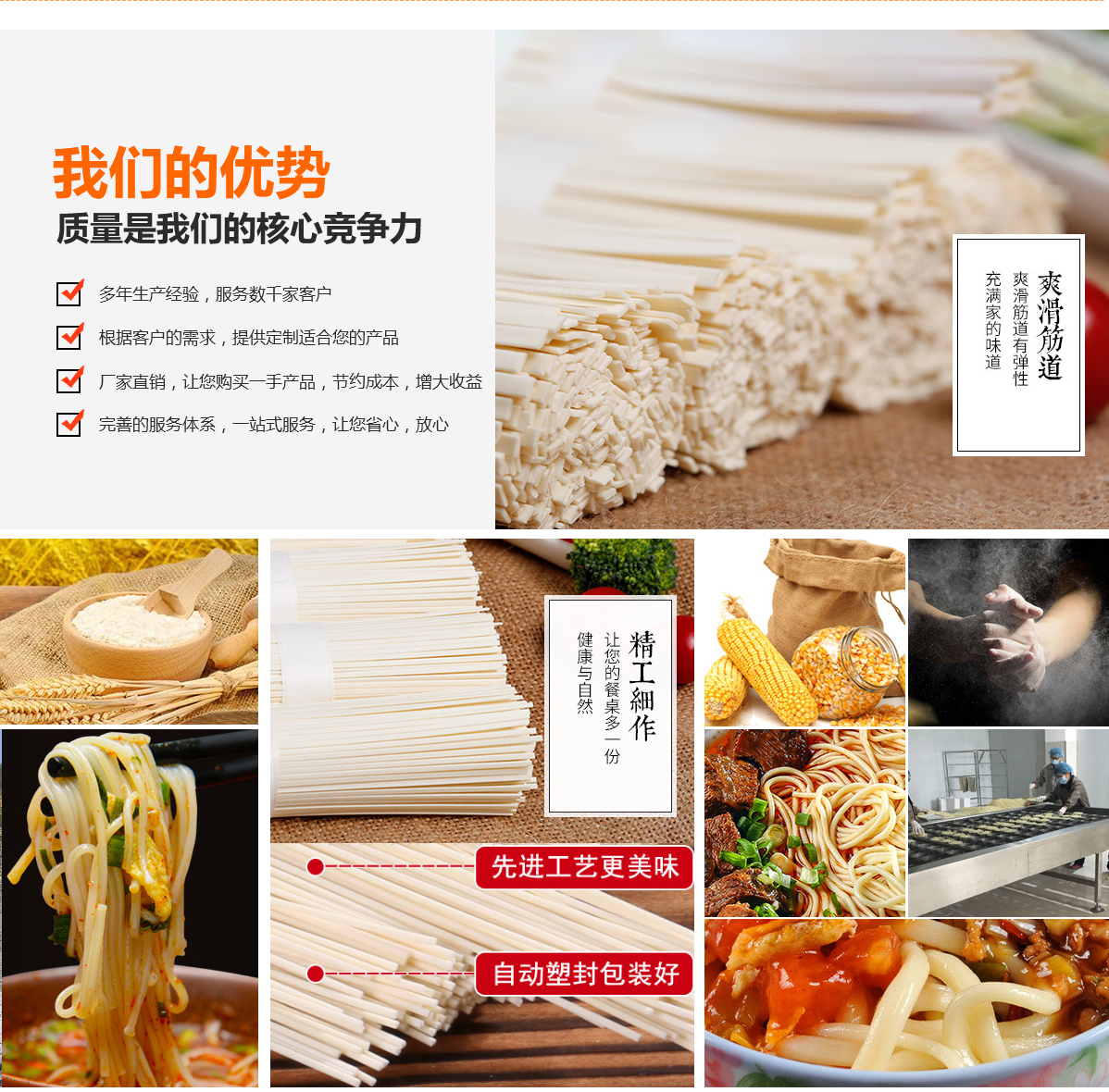 挑選好優(yōu)質(zhì)的材料進行加工制作,保持面條本身的質(zhì)量及口感,帶給客戶永定的產(chǎn)品